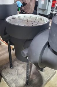 The client required the ChillerMag to be placed on a 12” line. An order of this magnitude required a custom solution to facilitate servicing. The ChillerMag filter was split into two halves, allowing the magnet assembly to be pulled one half at a time for ease of cleaning. This greatly reduced the total weight of the filter and contaminants when being serviced by a single person. This unique solution can be seen below, with one half of the filter placed on the ground.